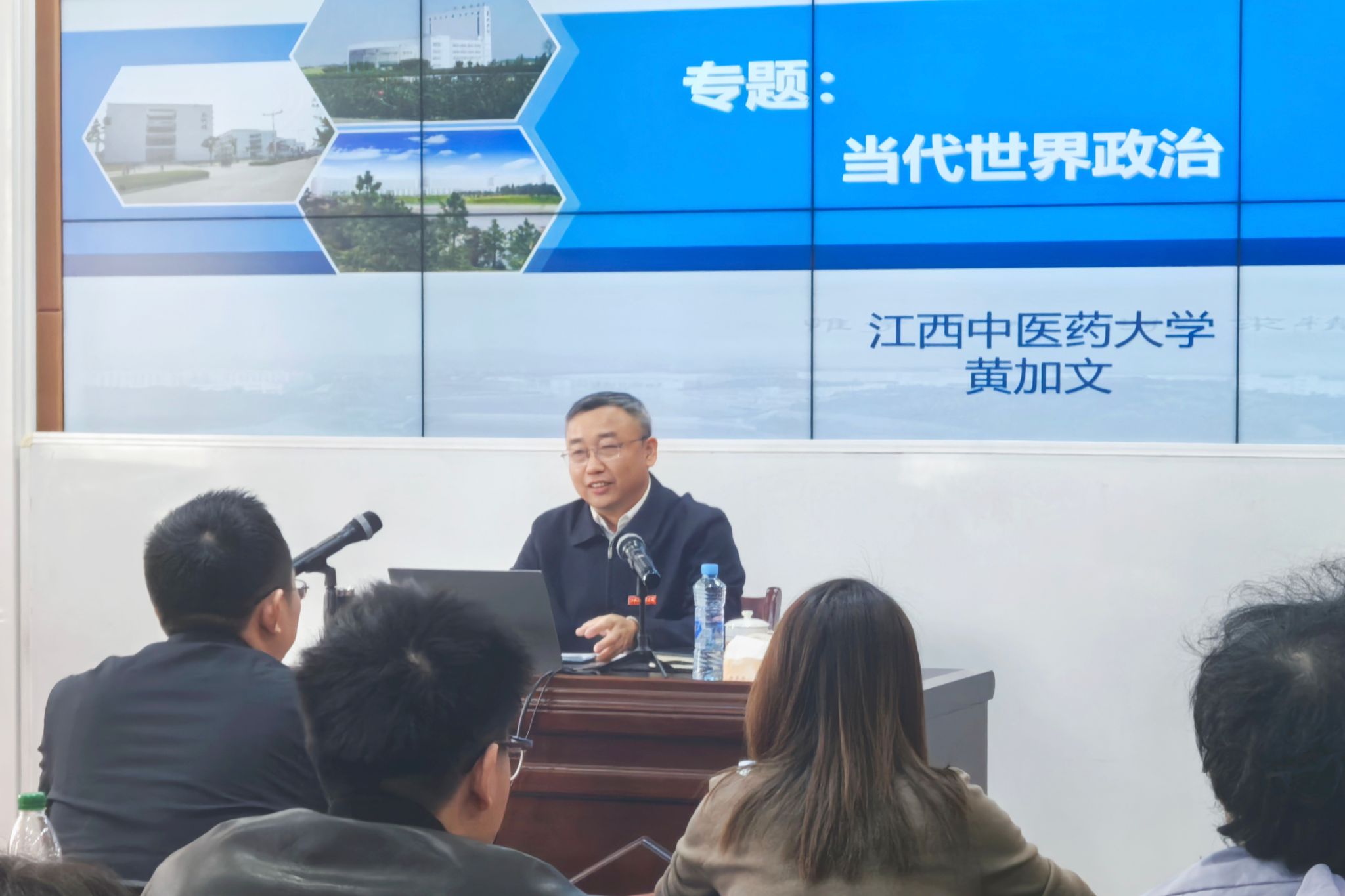 在讲授中,黄加文通过详实的案例与清晰的理论分析,剖析了霸权主义、局部冲突、安全威胁、恐怖主义与冷战思维等全球性问题的根源与表现,引导学生思考中国在全球治理中的角色与贡献。他强调,中国提出的全球发展倡议、全球安全倡议、全球文明倡议和全球治理倡议等一系列理念与实践,为世界政治文明发展提供了中国智慧与中国方案。