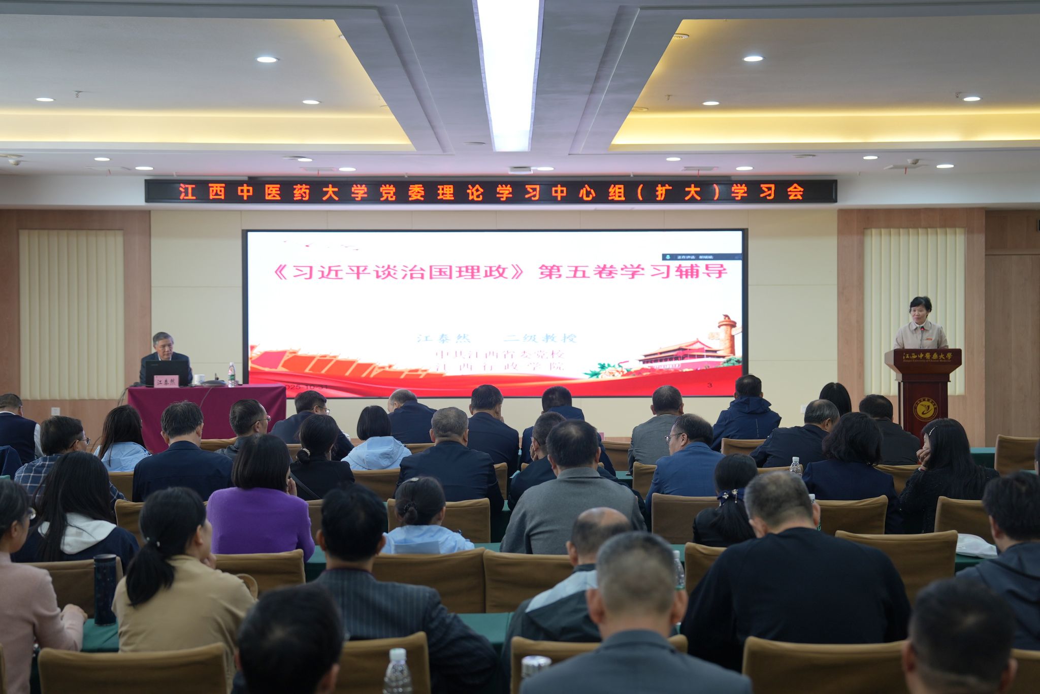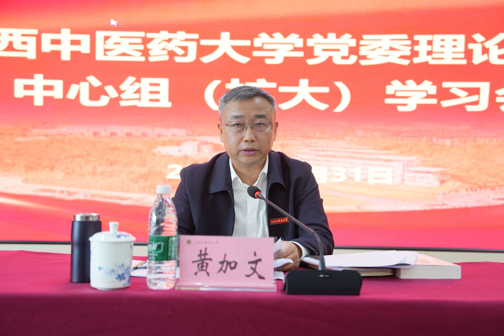 黄加文强调,要提高政治站位,在深学细悟中领会思想伟力、筑牢思想根基,深刻把握《习近平谈治国理政》第五卷的丰富内涵,将第五卷与第一卷至第四卷作为一个整体贯通起来学习,准确把握其蕴含的新思想新观点新战略,自觉从党的创新理论中悟规律、明方向、学方法、增智慧。要推动转化运用,在学用结合中践行使命担当、争创一流,持续深化教育综合改革,落实立德树人根本任务,以“有组织科研”为抓手,推动科技创新与产业发展深度融合,以“两个结合”推动中医药文化传承创新发展,切实把学习成果转化为推动学校高质量发展的生动实践。要健全长效机制,加强组织领导,持续巩固深入贯彻中央八项规定精神学习教育成果,扎实推进作风建设常态化长效化,以实实在在的工作成效检验学习成果。